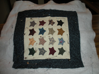There are lots of pieces that were over a yard, many 1/2 yard cuts and many that were fat quarters size or somewhere in between. I also found a few nice pieces of wool. I found a few pieces of batting that were large enough to use to practice on "Miss J" , my new mid-arm quilting set-up.
